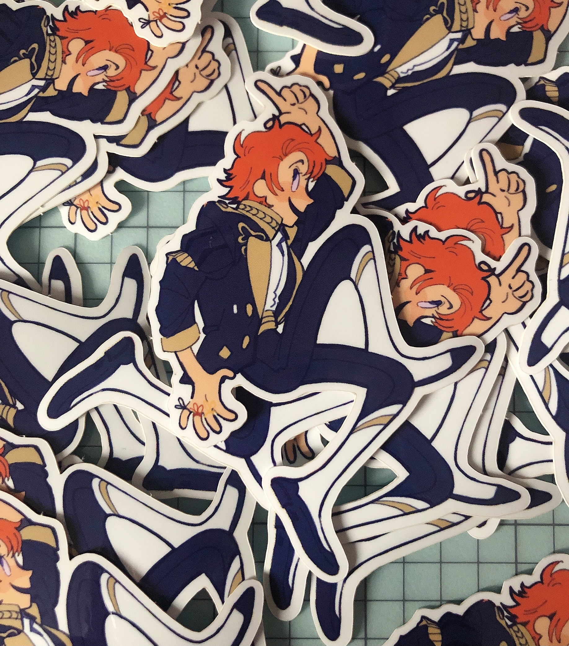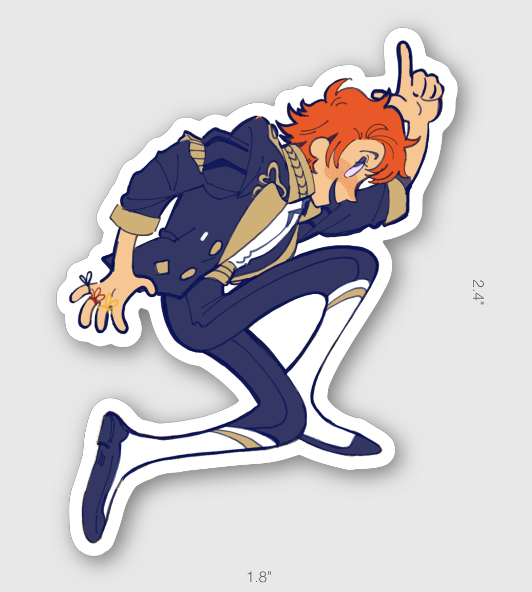 Vinaly water resistant sticker of Sylvain from Fe:3h Roughly 3 inches tall in size.