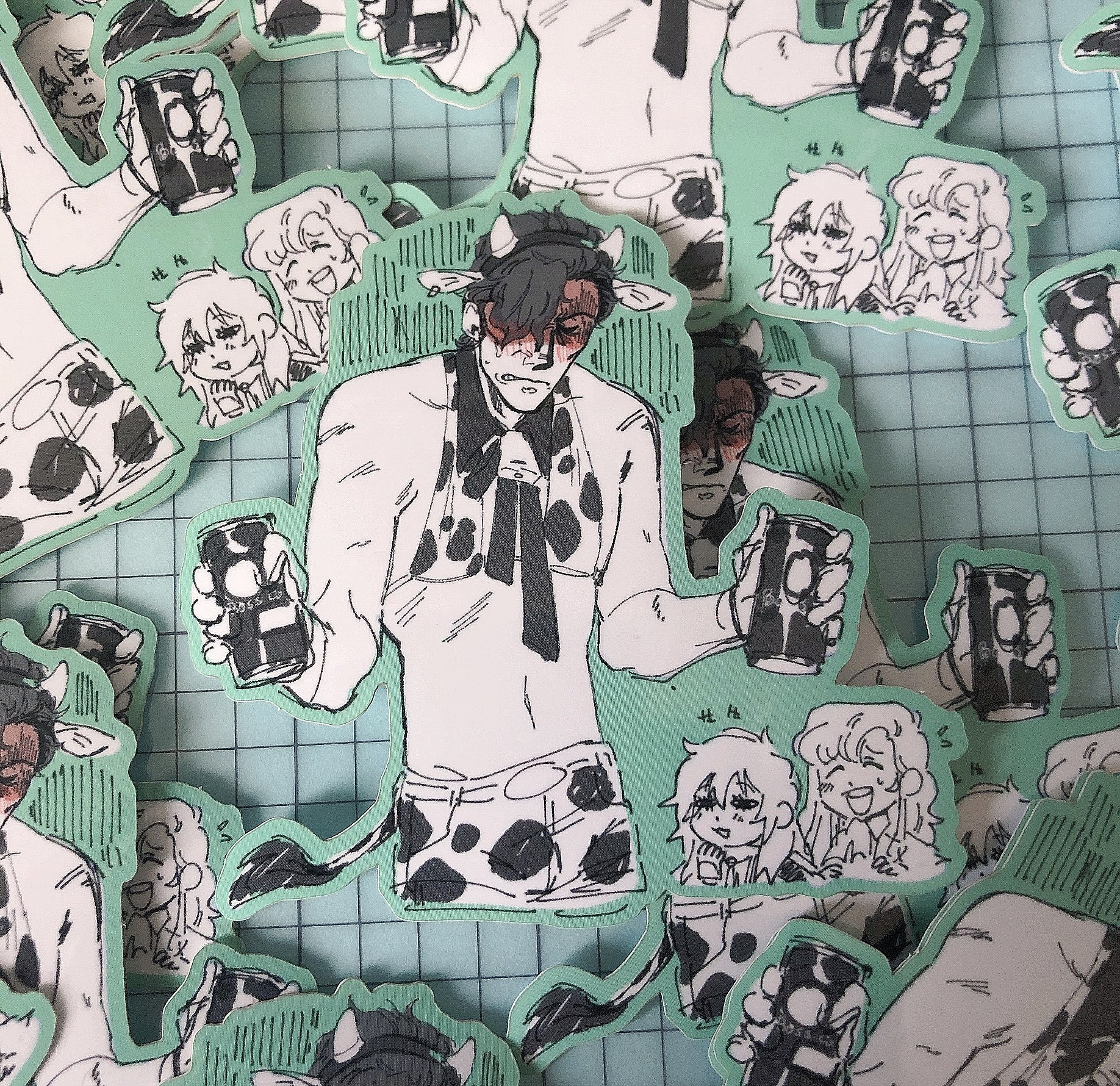 3inch vinyl water resistant sticker of Hubert Fire Emblem dressed as a cow for new years.