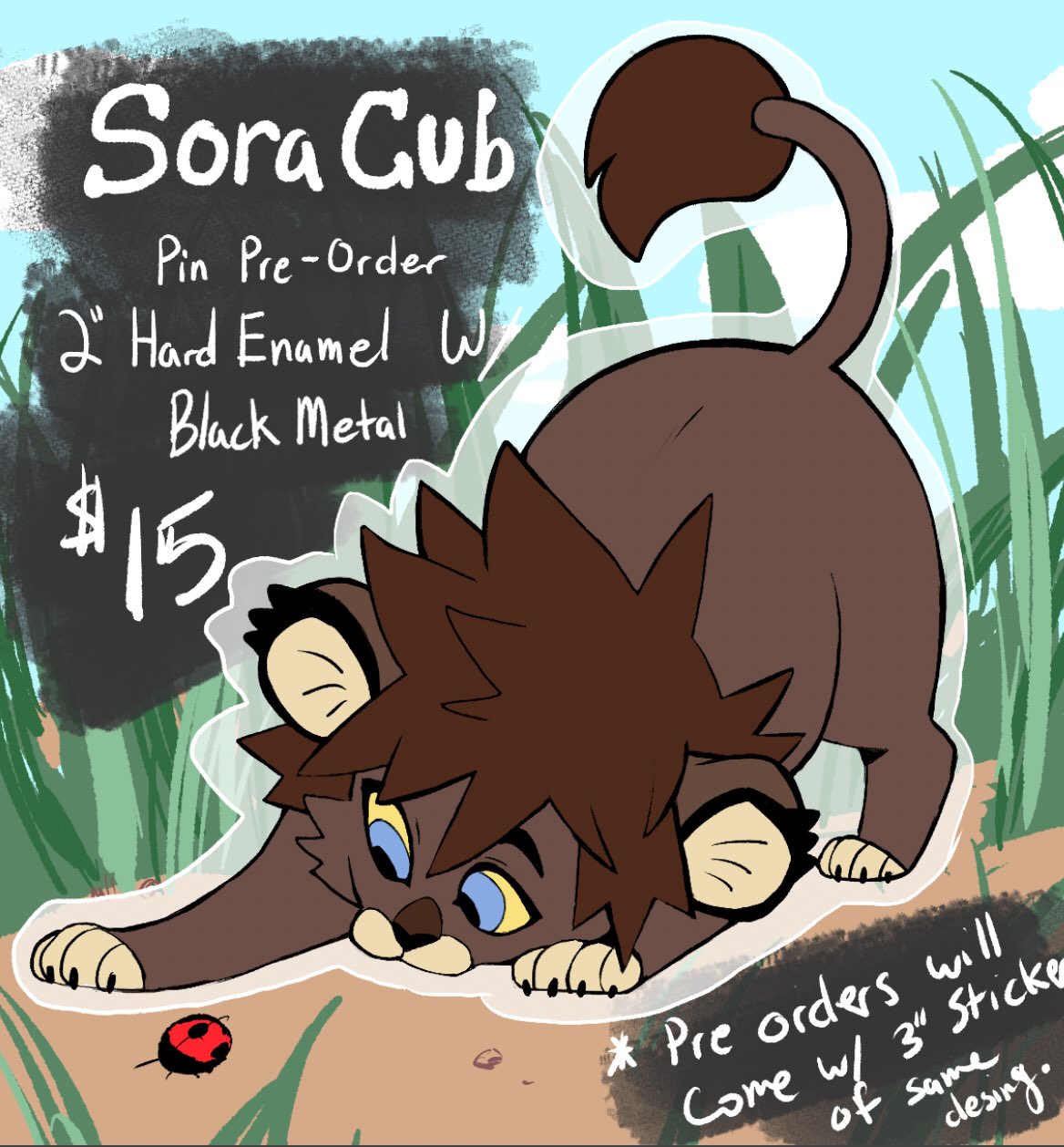 1.5inch hard enamel pin of Lion King world Sora from Kingdom Hearts. Black nickel metal with hard enamel finish. Two heart shaped rubber clasps on the back.